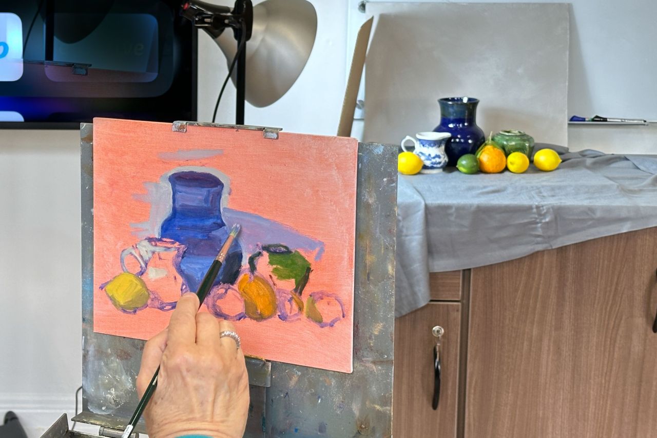 You will need to bring your own supplies, an easel if you choose to paint and a drop cloth to protect the floor and tables. There is no teacher, just lots of practice and support from others. A still life will be provided.