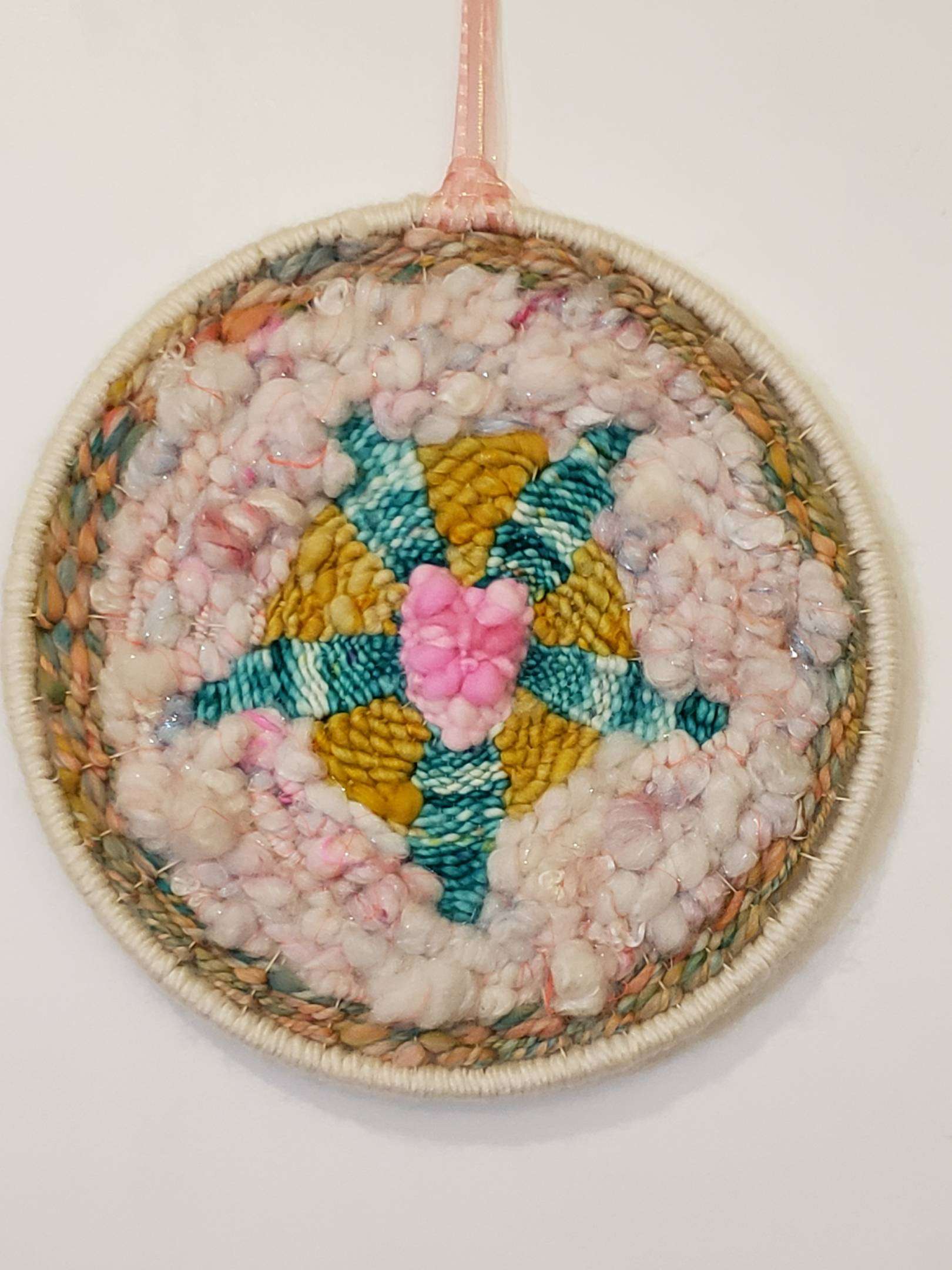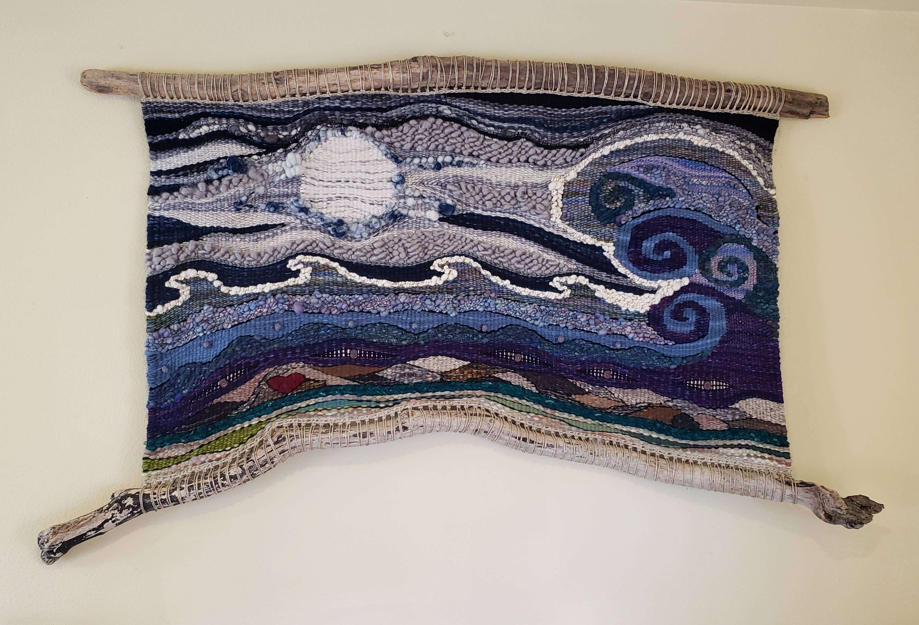 Since my retirement, I have journeyed back to my own artistic spirit. As a textile artist, I find inspiration from dreams, creative thinking, and my own photographs. Each weaving tells a story of my life experiences in which I hope that others can relate. I use hand spun fibers from spinners located all over the world to create a variety of textures and color combinations in my work. My strength is color which is an innate ability that I am sure was also influenced by my mother. My weaving process is off loom in different sizes and shapes. I currently have my weavings and pottery in Gallery SOHO Pomona Valley Art Association in Claremont, California.