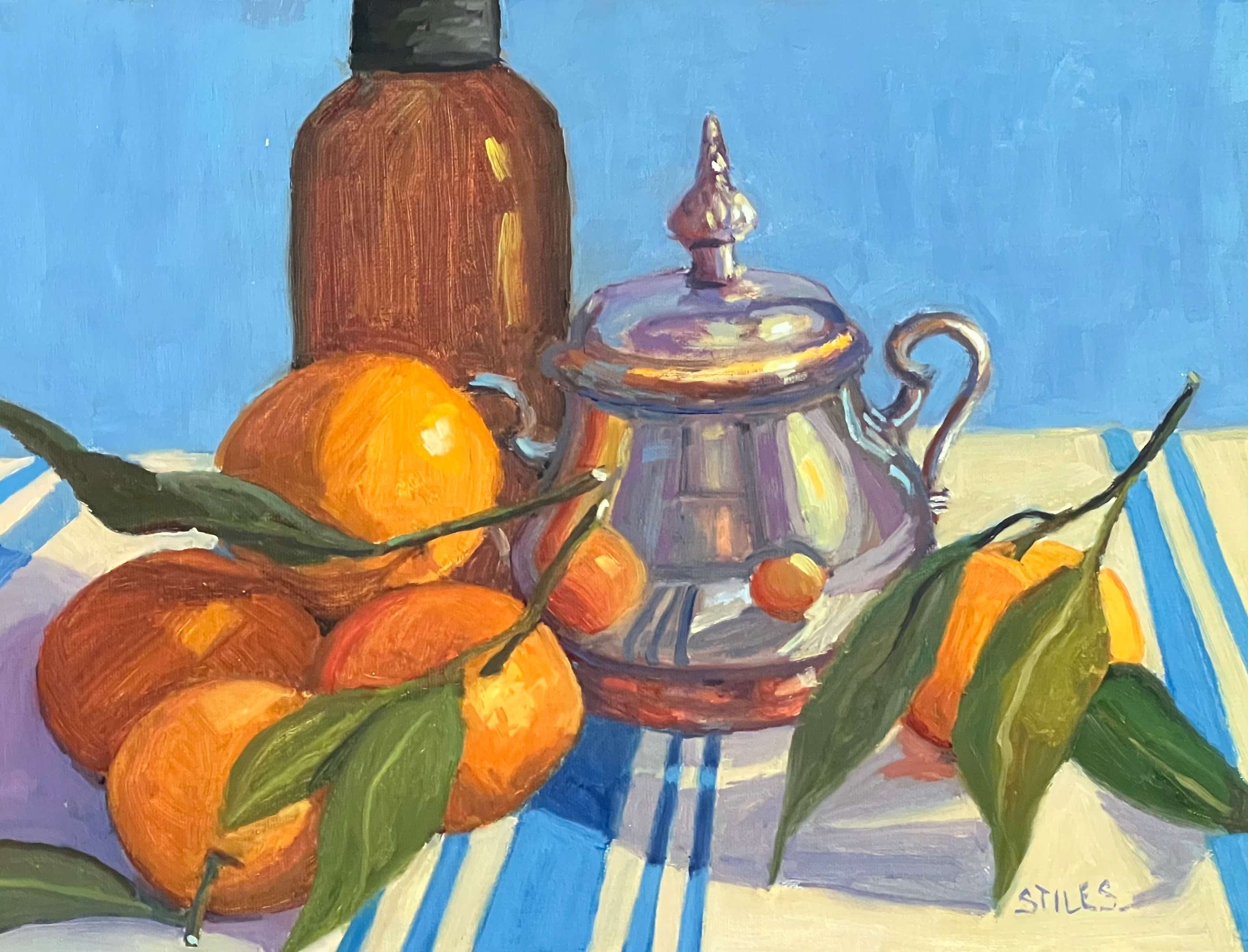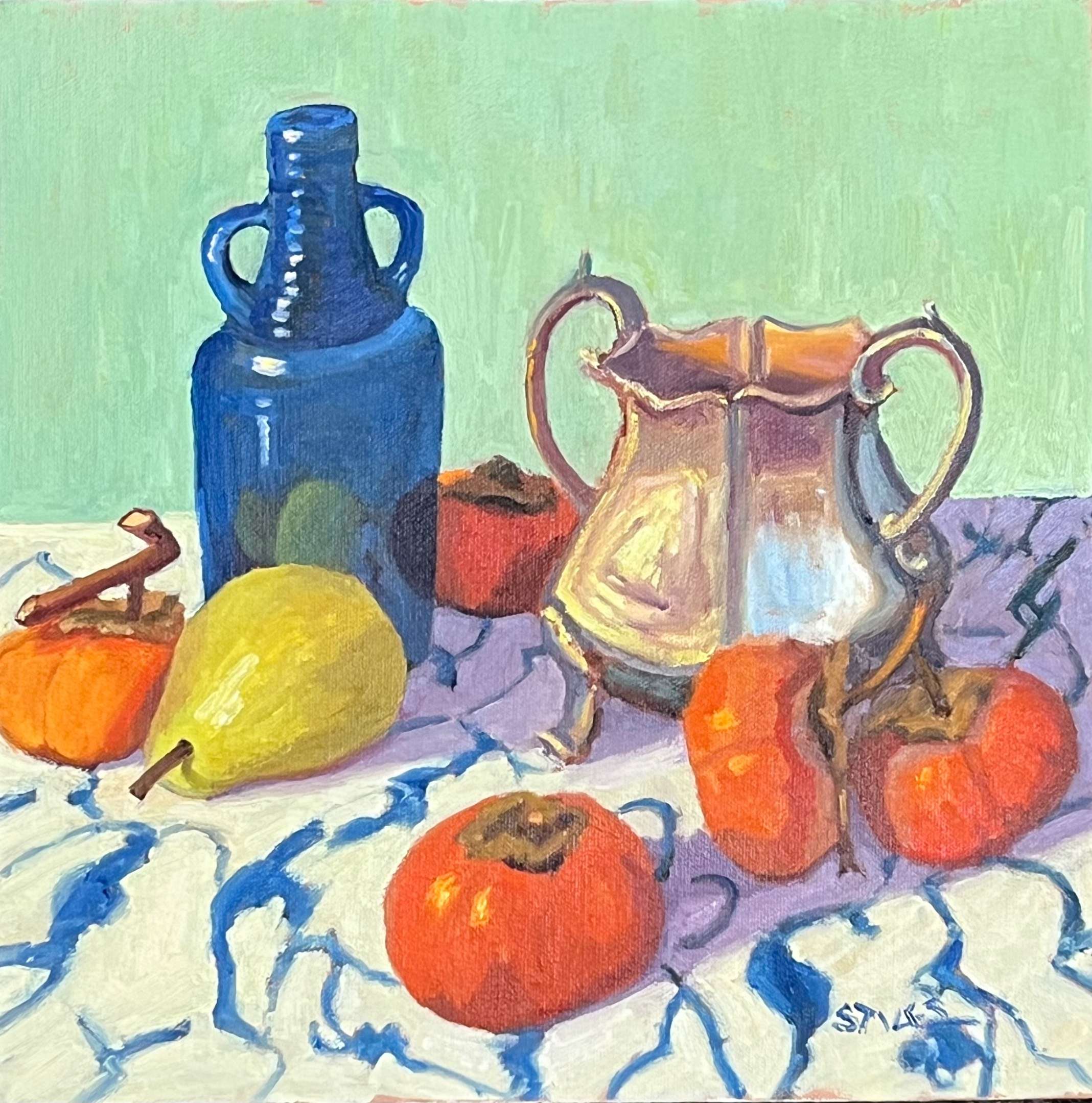 Artist Cindy Stiles moved to Cambria from the Central Valley where her artistic journey began in 2006 after retiring from elementary school teaching and many years of volunteering in the community. Her early art studies focused on stylized, color-saturated acrylic still lifes that can best be described as fun and funky. Before long however her interest transitioned to realism and she quickly enrolled in drawing and painting classes wherever she could find them. She also put away the acrylic paints in favor of her favorite medium, oil. Over the past several years she has studied seriously on her own and with master artists in workshops throughout the United States. She has exhibited her work at Cambria Center for the Arts and the Bakersfield Art Center and has been juried into a number of shows at the Bakersfield Museum of Art. Many of her paintings have found homes with collectors as far away as North Carolina, Hawaii, Missouri and Texas. While Cindy paints outdoors with the Cambria Wednesday Irregulars she draws inspiration from the California Impressionists, both living and historic. Her biggest cheerleaders are her husband David and her grown children Anne and John.